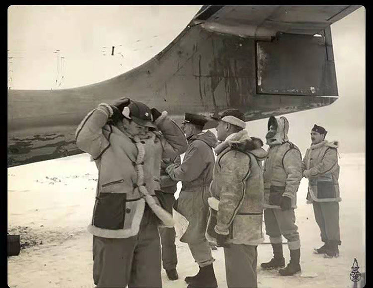 Produced between 1941 and 1942, it was specifically issued to aircrew and aviation personnel working in cold regions. The B7 parka effectively protected against the harsh cold and blizzards of cold climates. Except for the large hood lined with animal fur, the B7 is made entirely of whole animal hides, making it particularly warm in cold and harsh regions. Due to the high manufacturing cost of the B7, especially during wartime, production of the B7 leather coat was reduced and the number issued was very small. The original B7 is extremely rare.