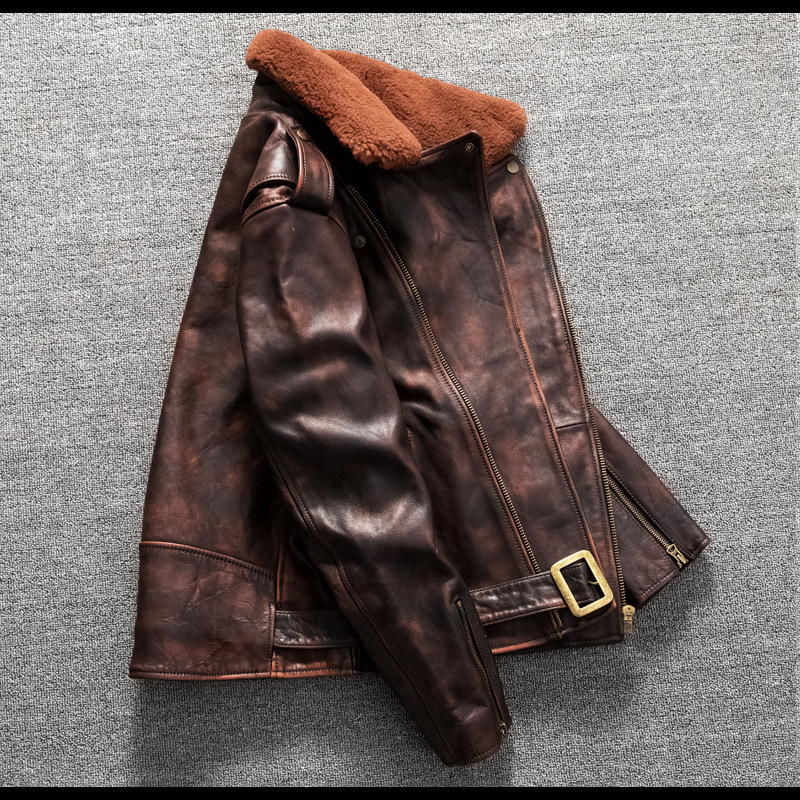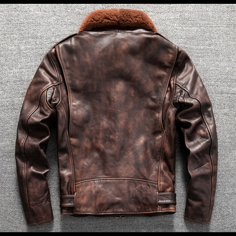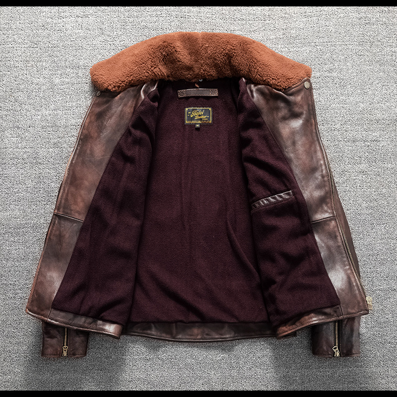 Men's top layer cowhide fur collar motorcycle jacket genuine leather jacket autumn and winter