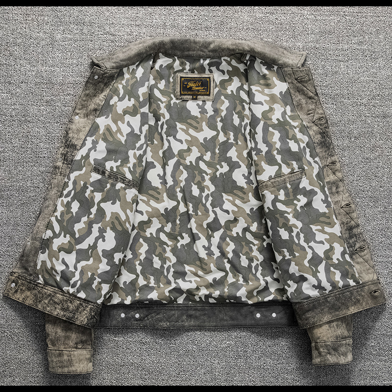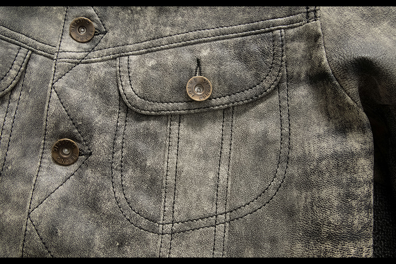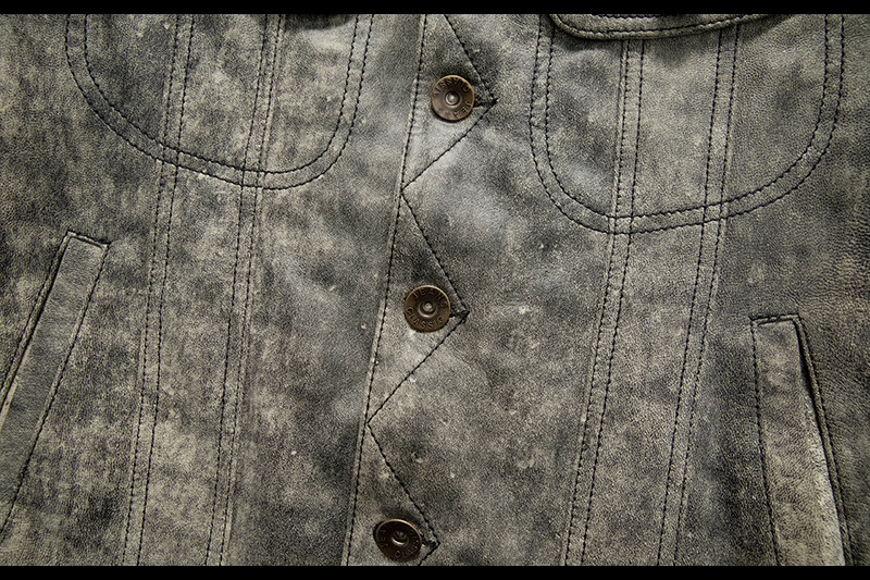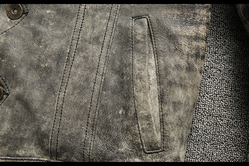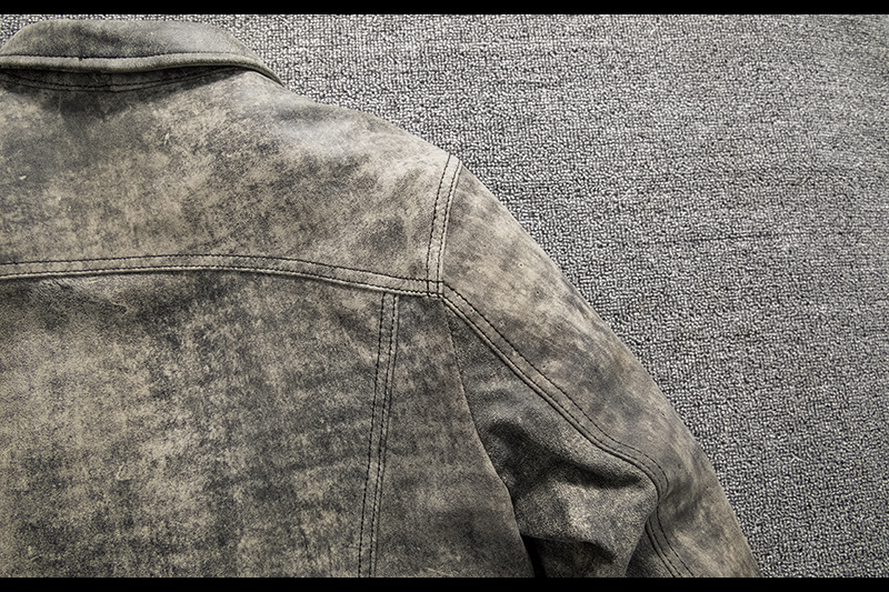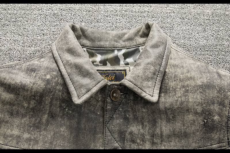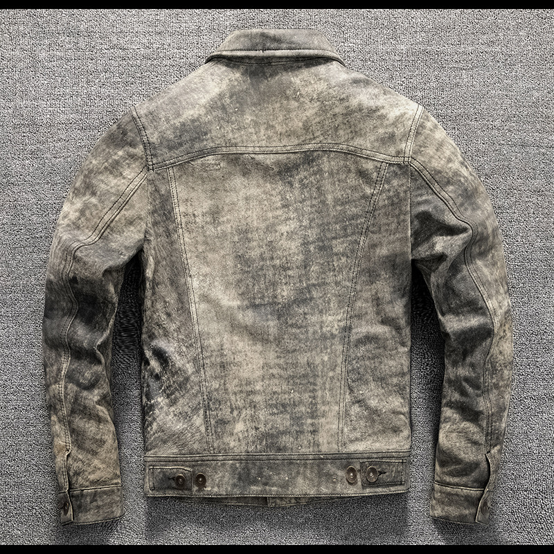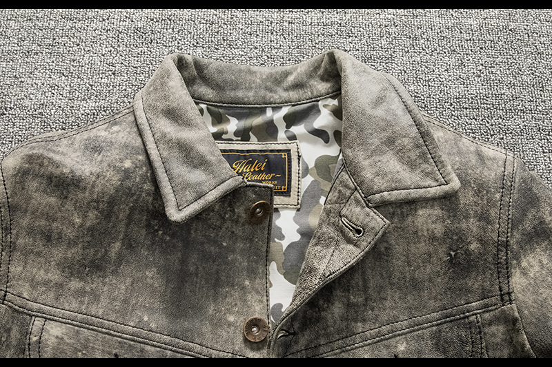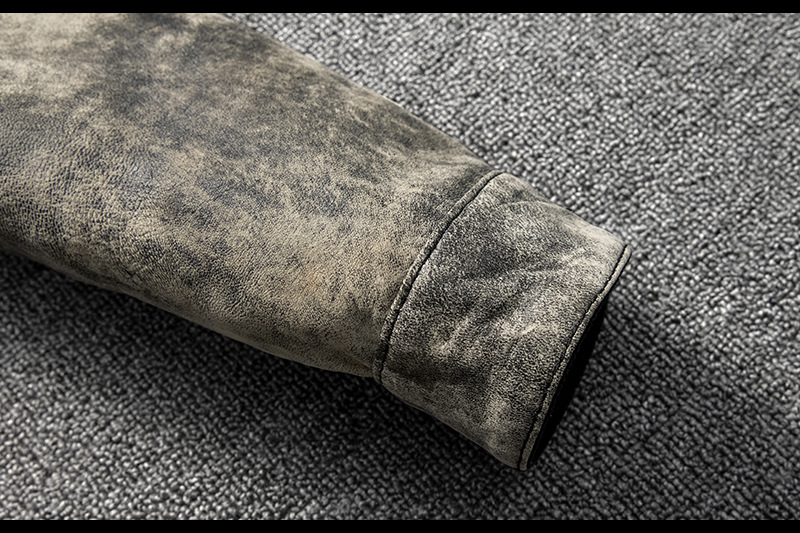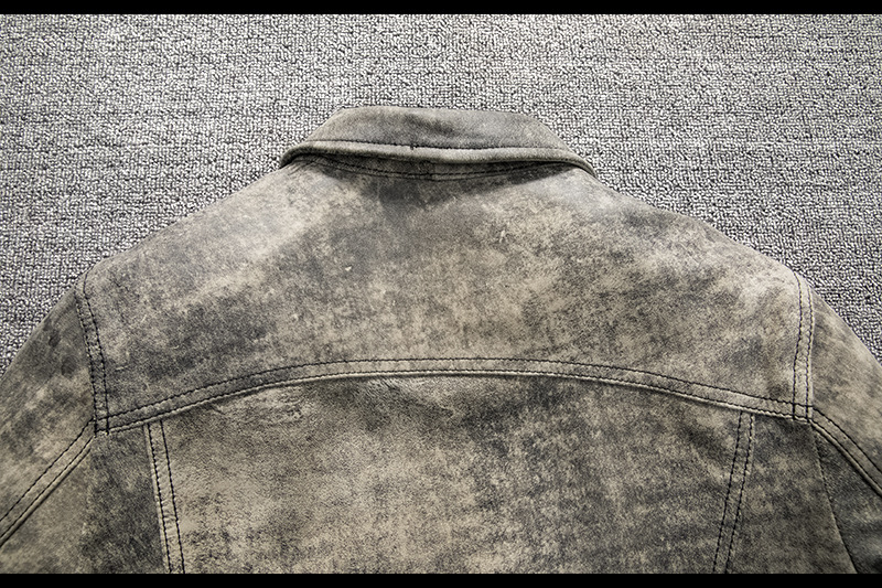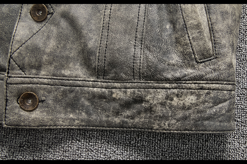 Men's top layer sheepskin leather jacket vintage leather jacket lapel short slim fit distressed gray coat