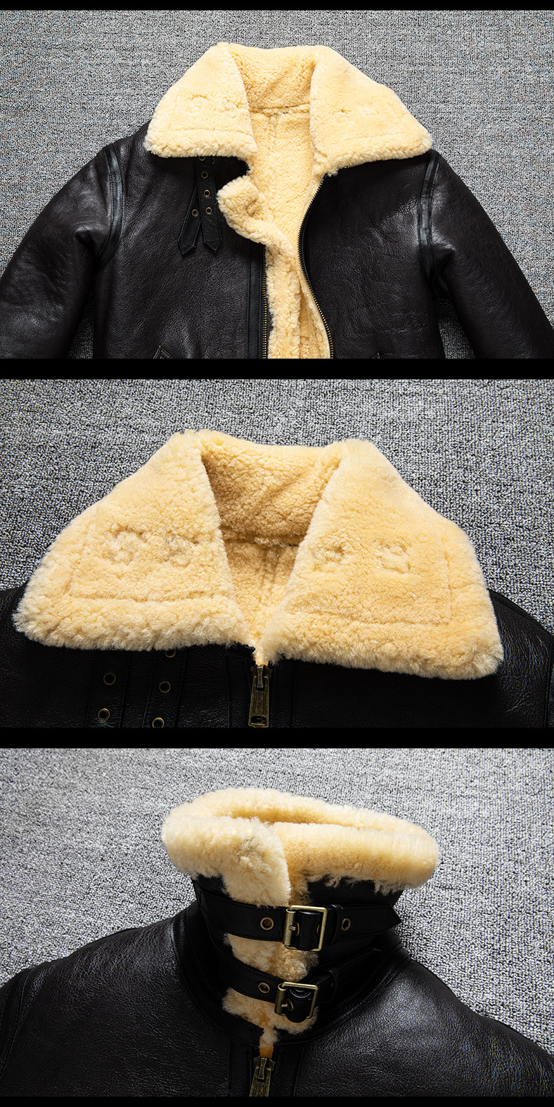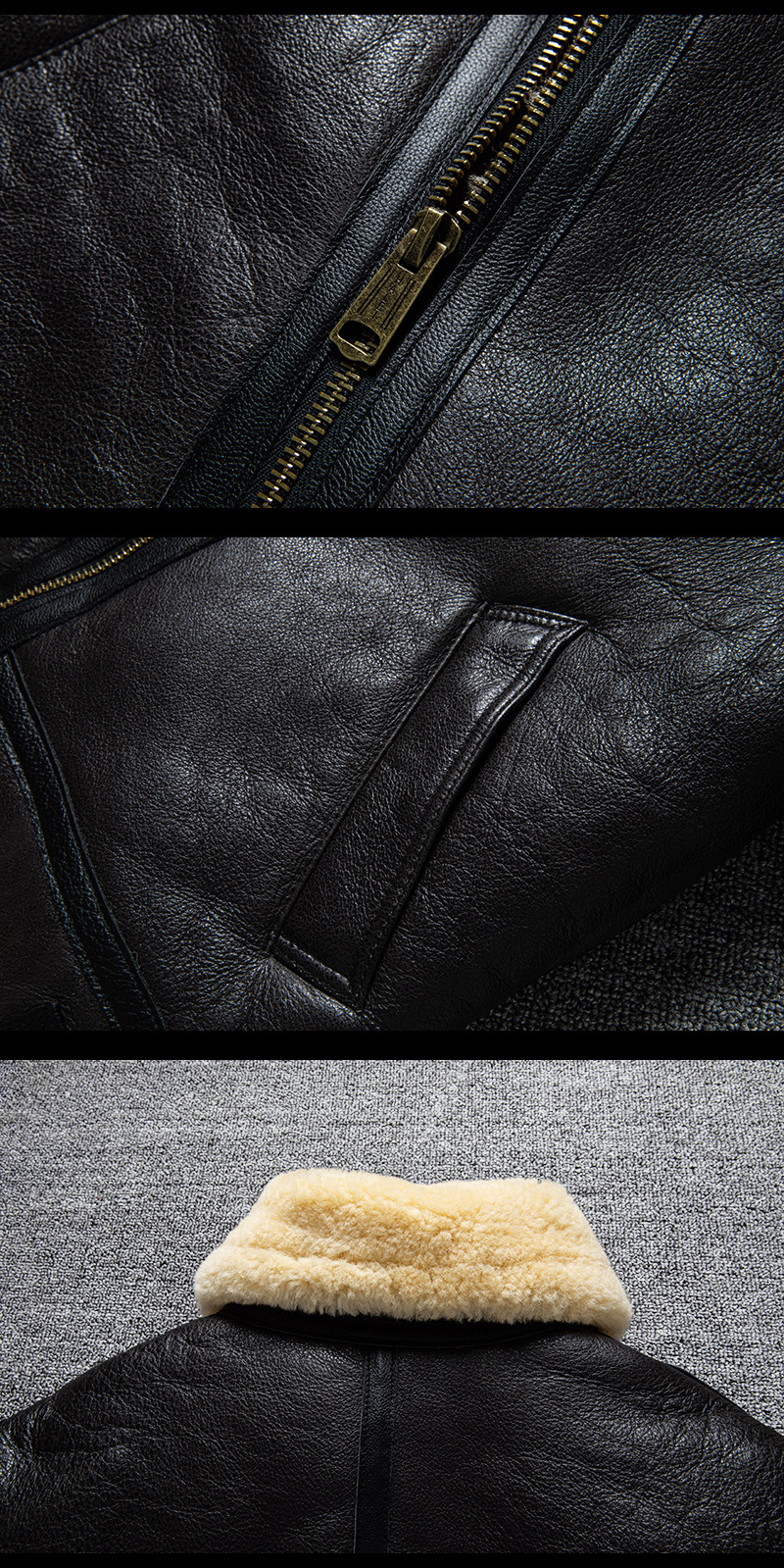 Men's winter sheepskin B3 genuine leather jacket