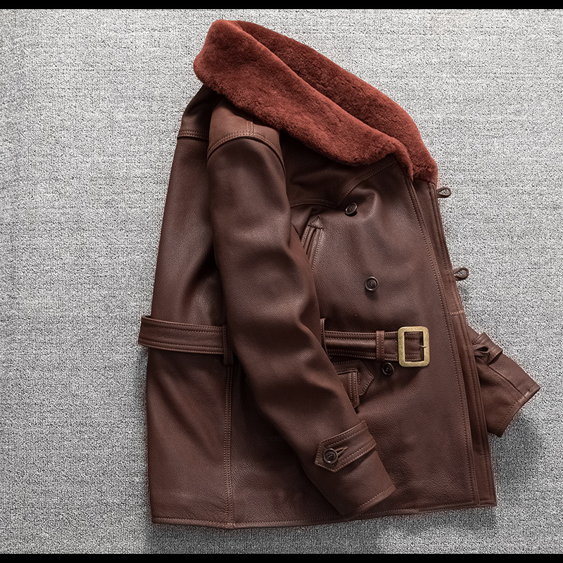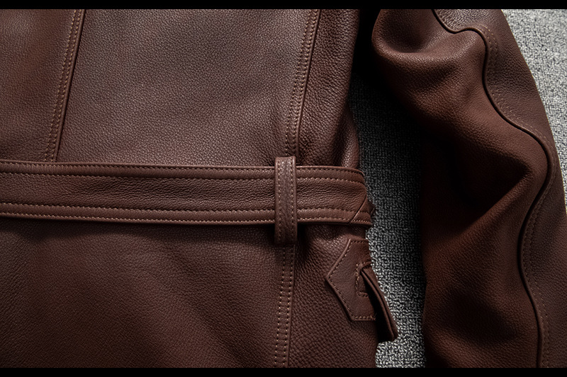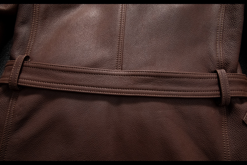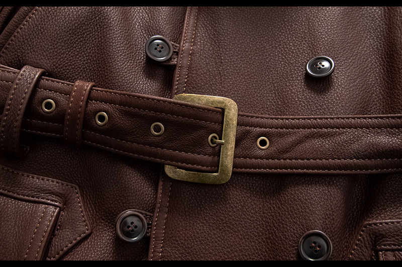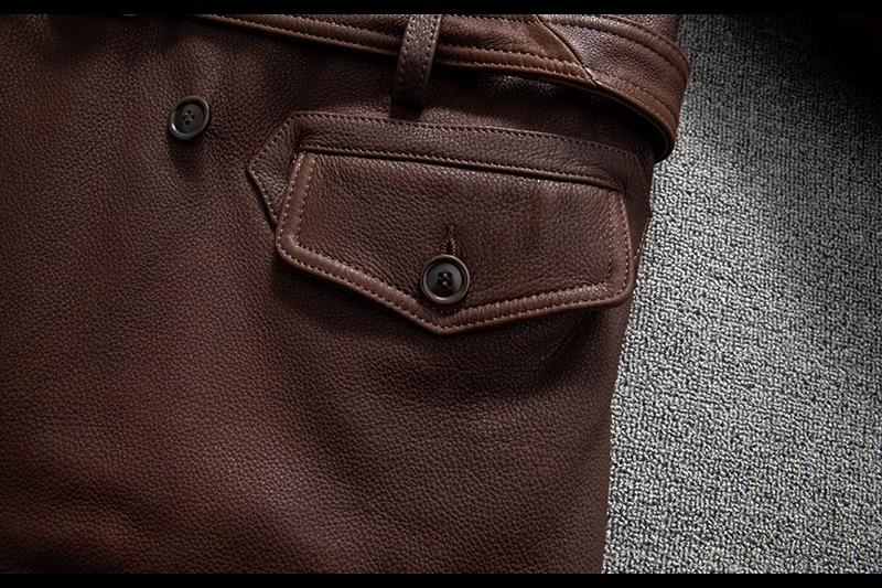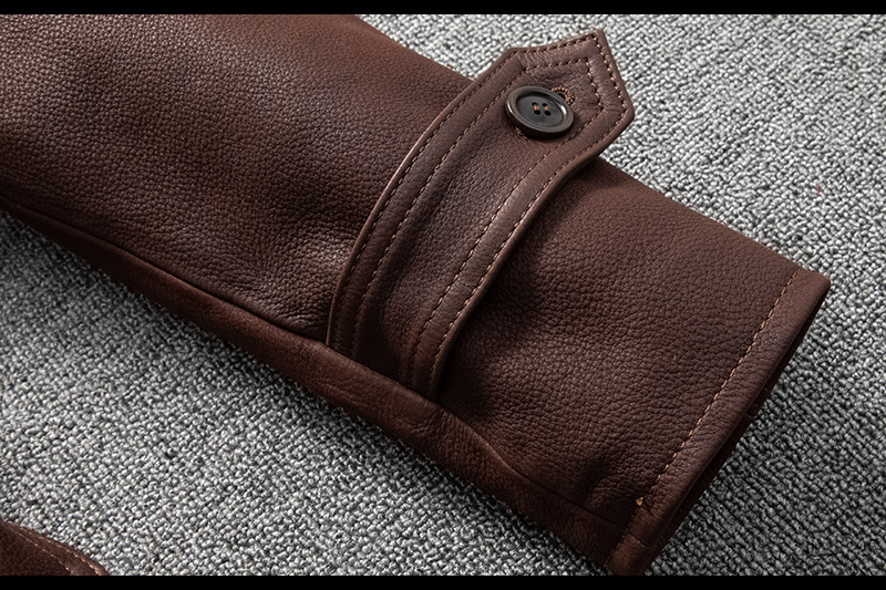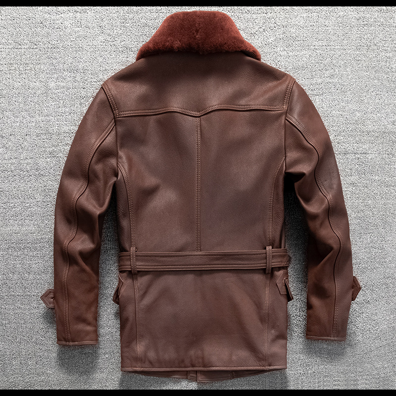 Retro mid-length men's genuine leather trench coat, top layer cowhide leather jacket, fur collar, large size winter coat