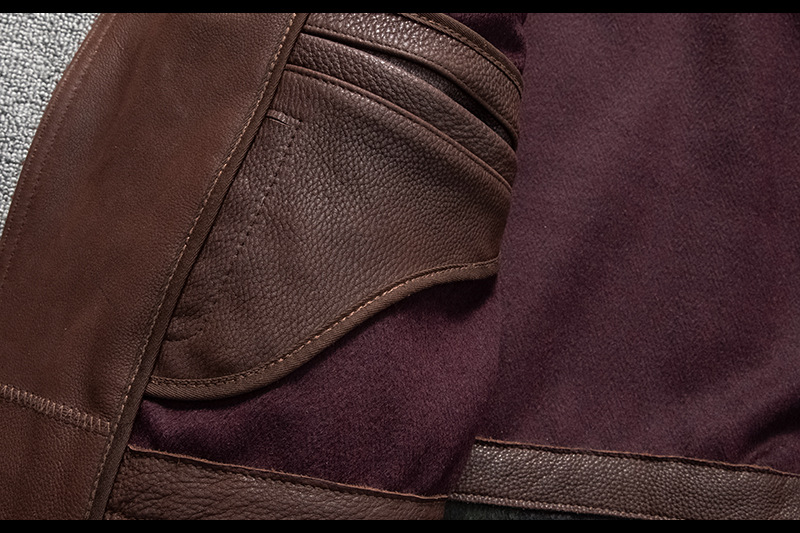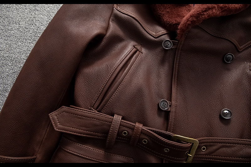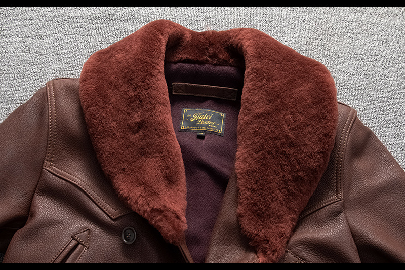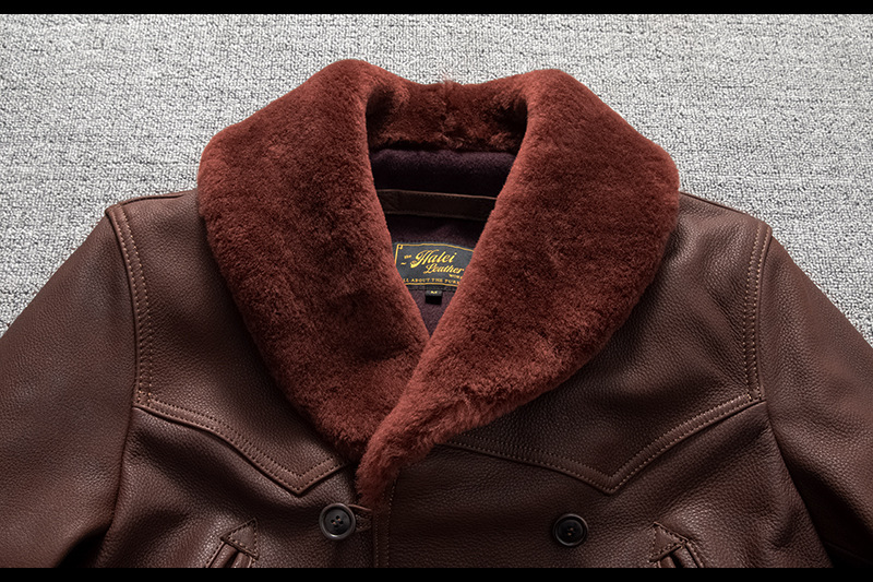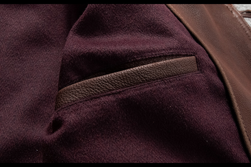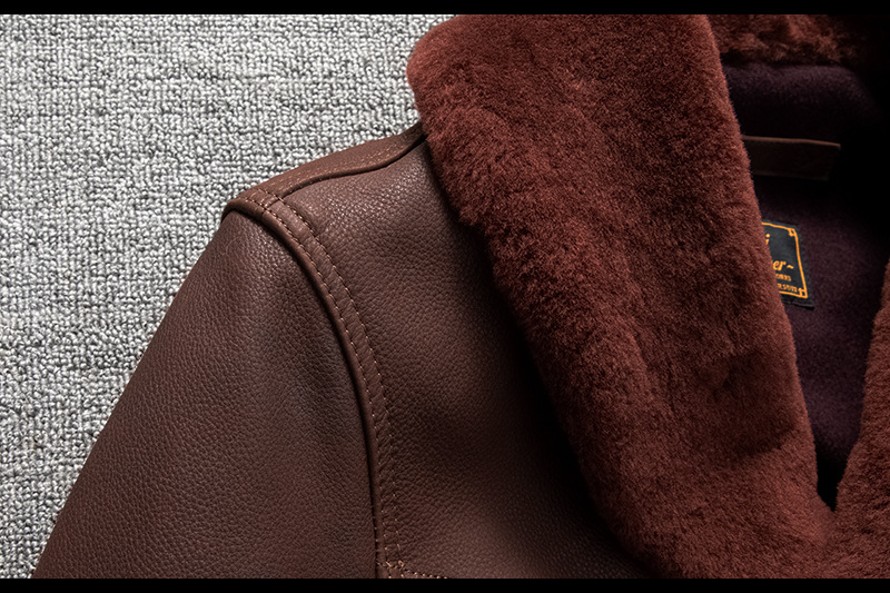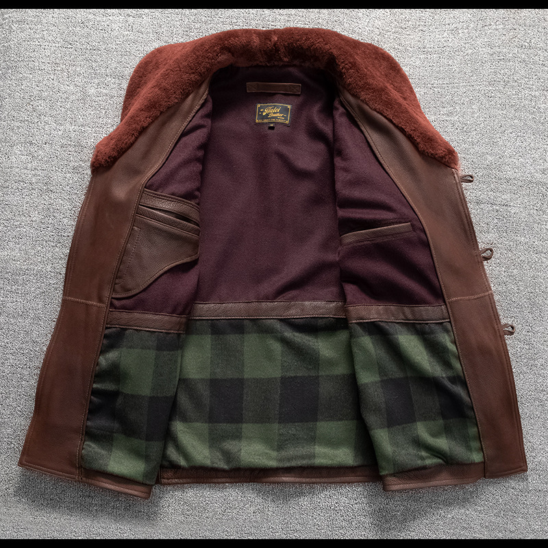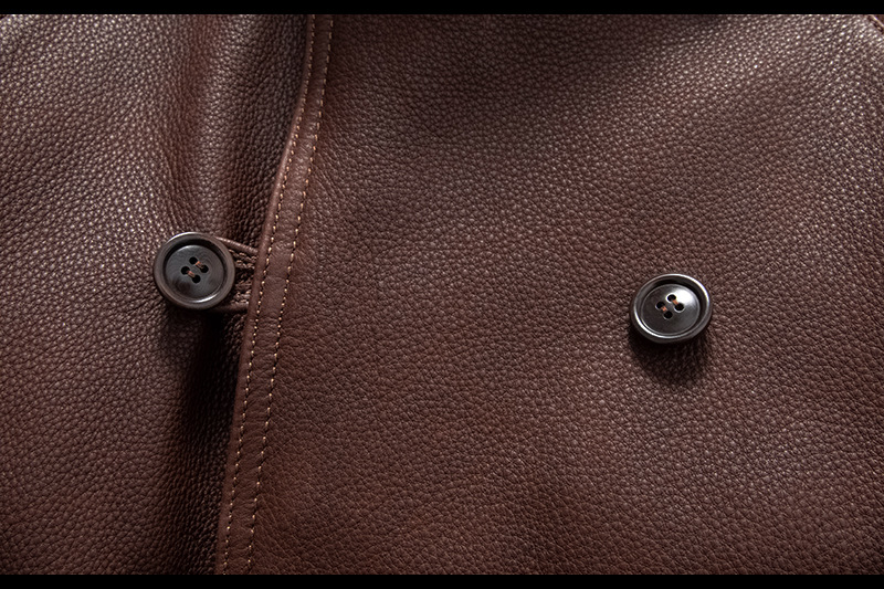 Retro mid-length men's genuine leather trench coat, top layer cowhide leather jacket, fur collar, large size winter coat