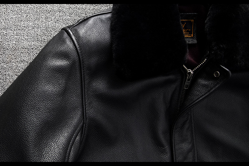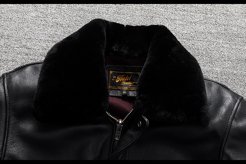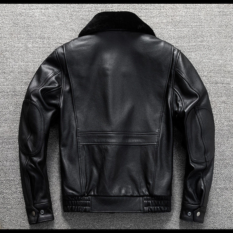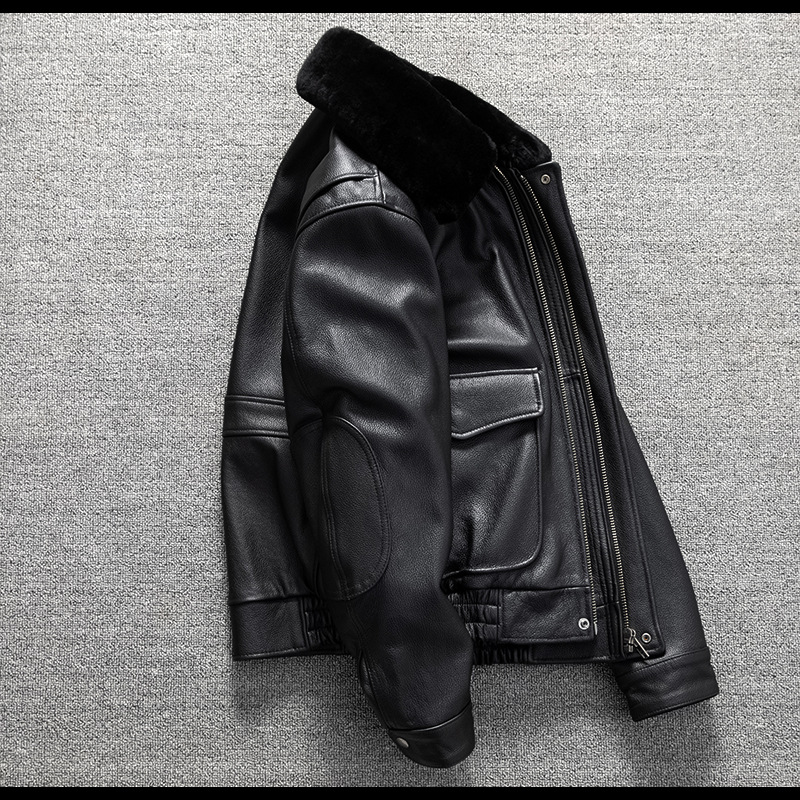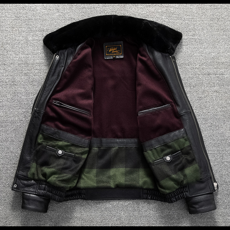 Top layer cowhide genuine leather jacket flight suit fur collar casual men's short autumn and winter large size jacket