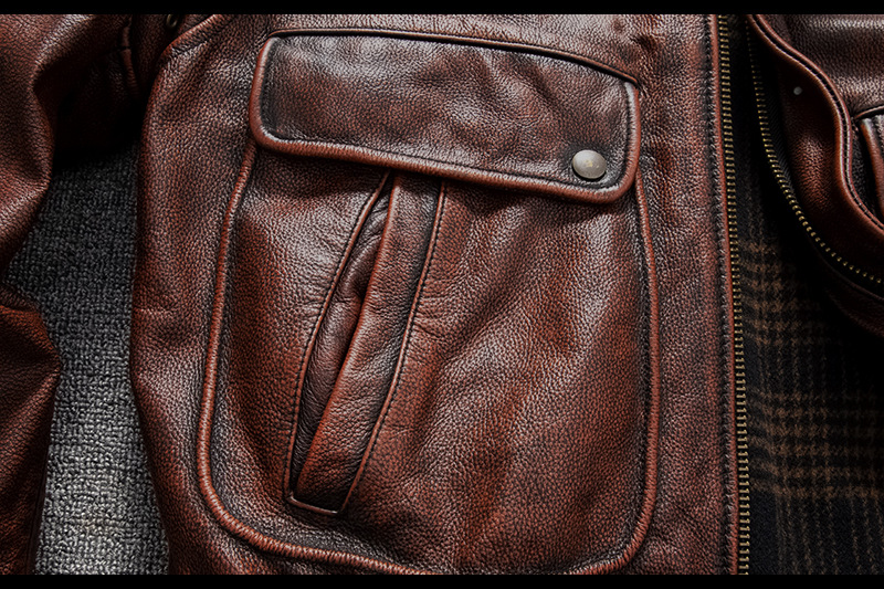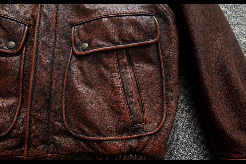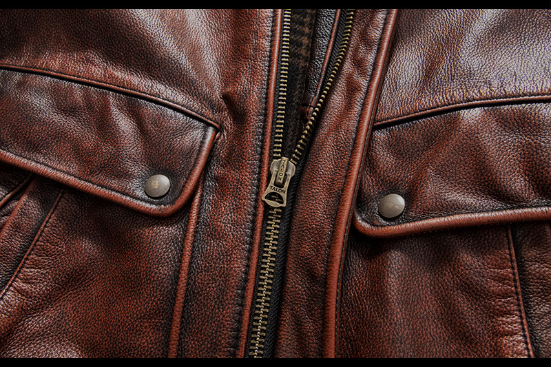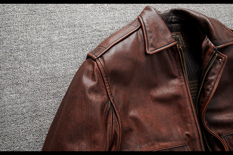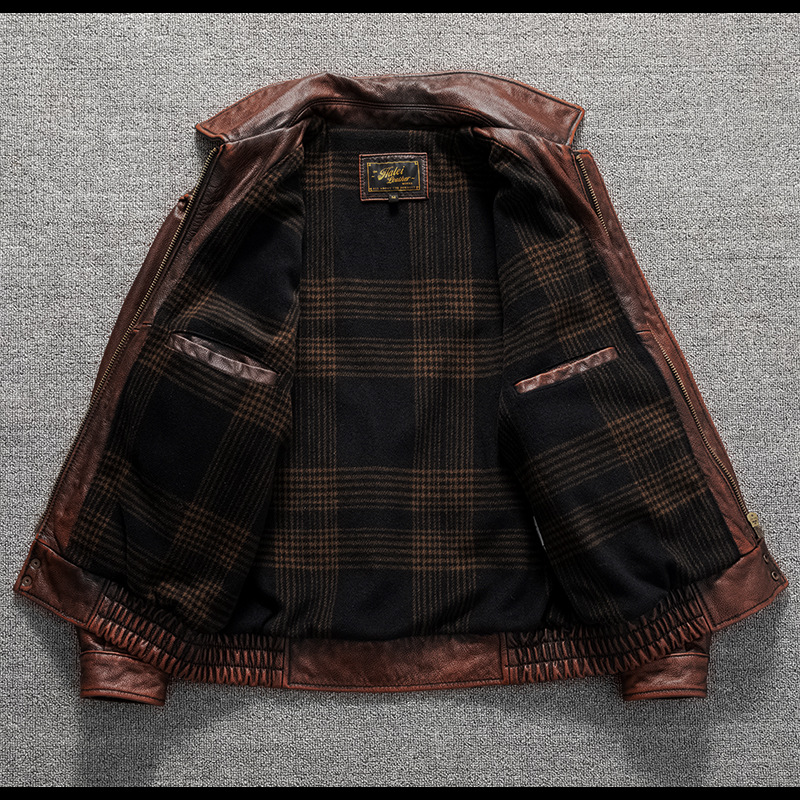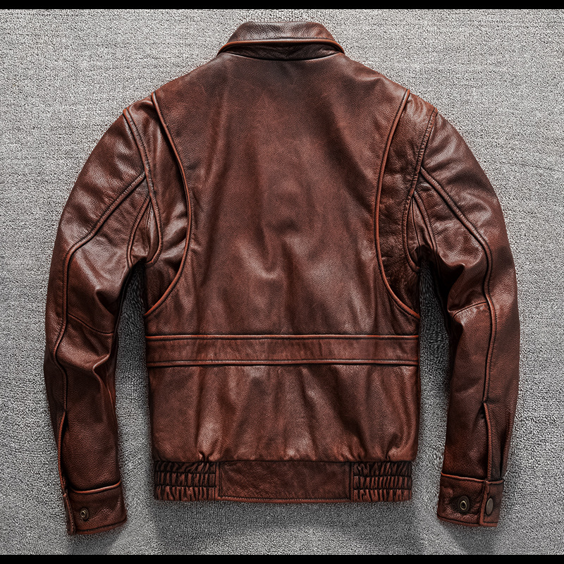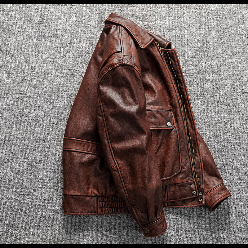 Vintage men's flight suit first layer cowhide leather motorcycle jacket autumn and winter jacket
